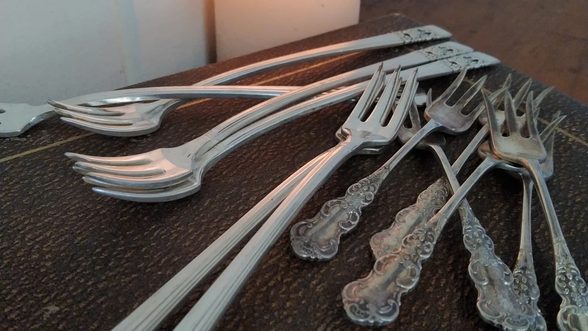 - Sterling or silver-plated accessories like napkin rings, butter dishes, etc.